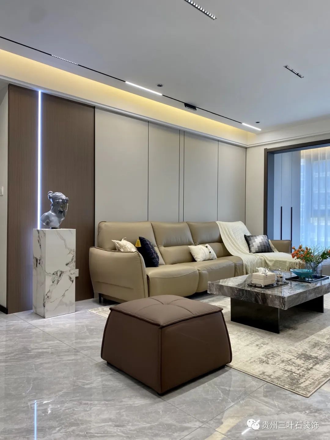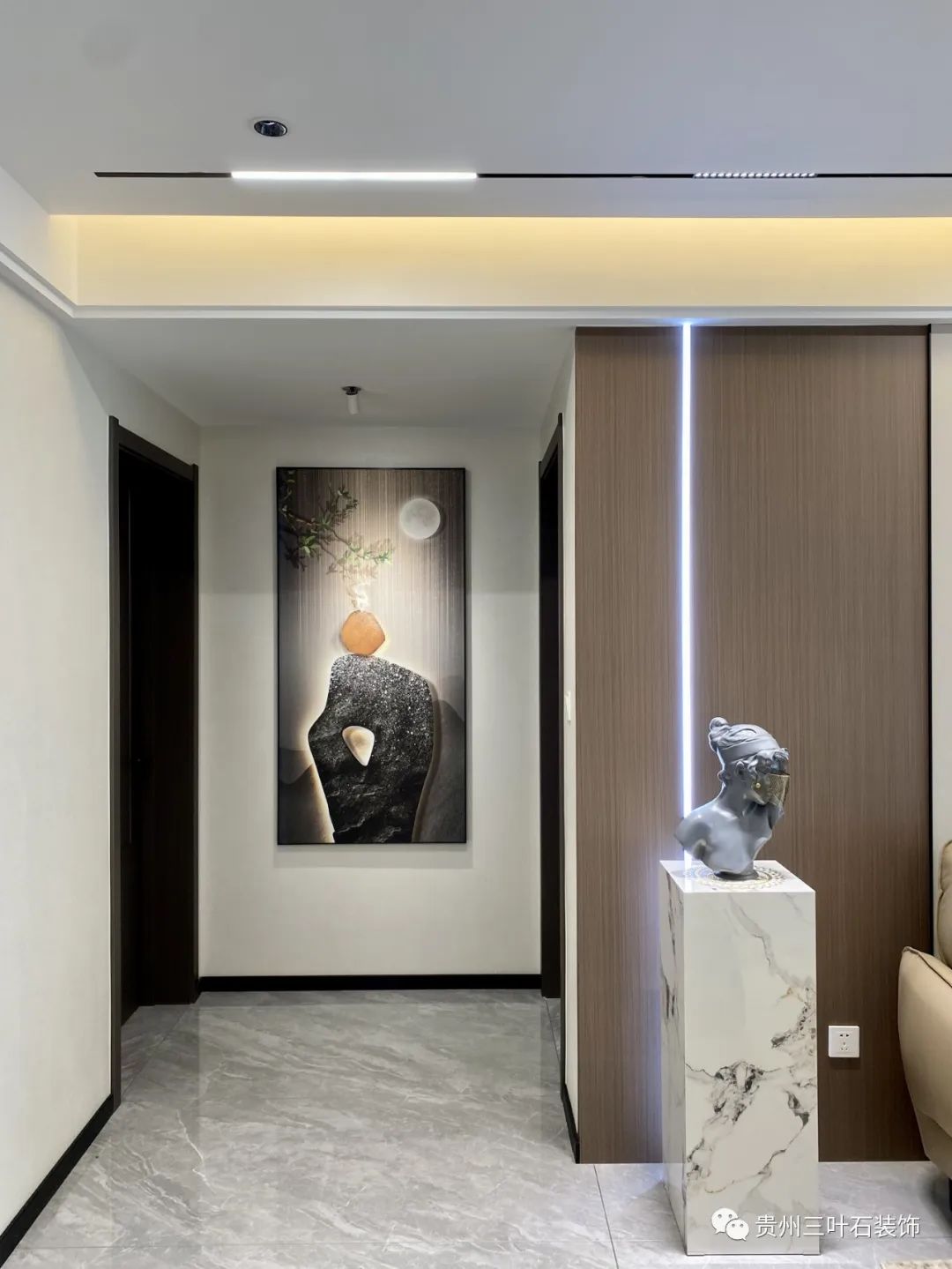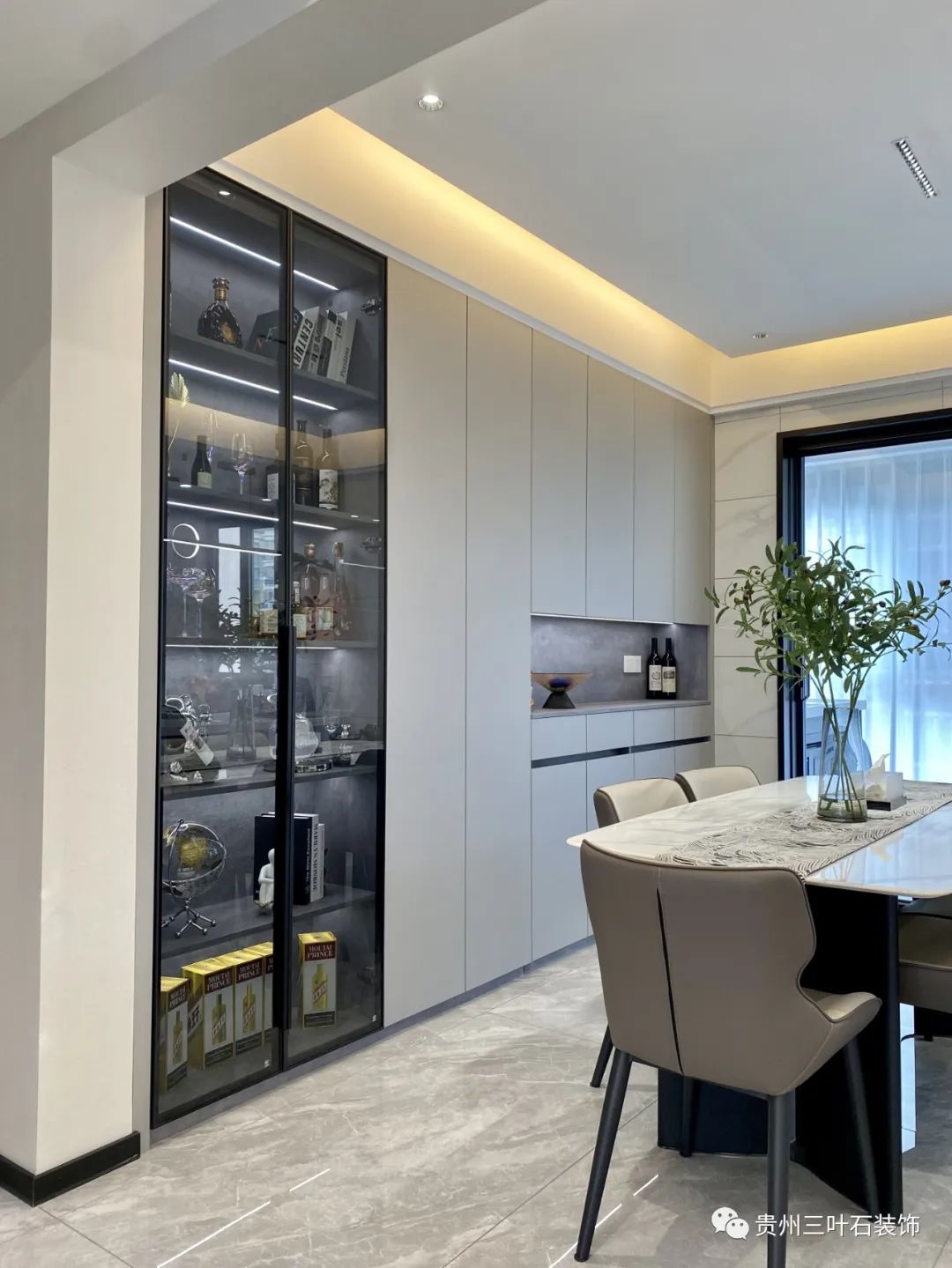 整體簡(jiǎn)潔的設(shè)計(jì)線條配以造型簡(jiǎn)約的雙眼皮吊頂,低調(diào)優(yōu)雅又不失氛圍感,打造出有層次和質(zhì)感的視覺(jué)效果。 無(wú)主燈設(shè)計(jì),提升了空間的通透感。 選擇瓷磚通鋪,搭配同色系美縫,耐臟又顯得寬敞,滿墻餐邊柜,儲(chǔ)物空間特別大,家里的日常用品和囤貨統(tǒng)統(tǒng)都能放進(jìn)去。